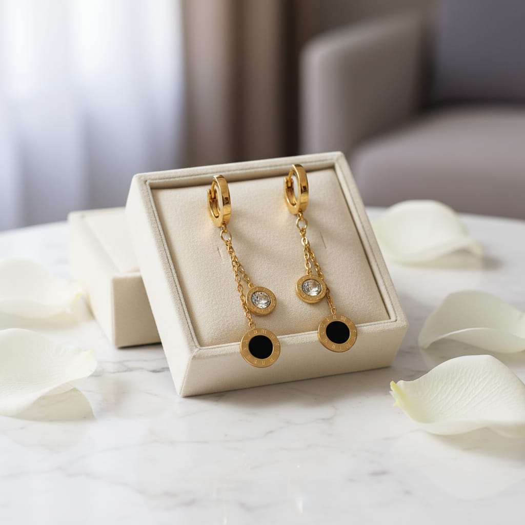BRINCO PINGENTE STRASS CRISTAL E PRETO