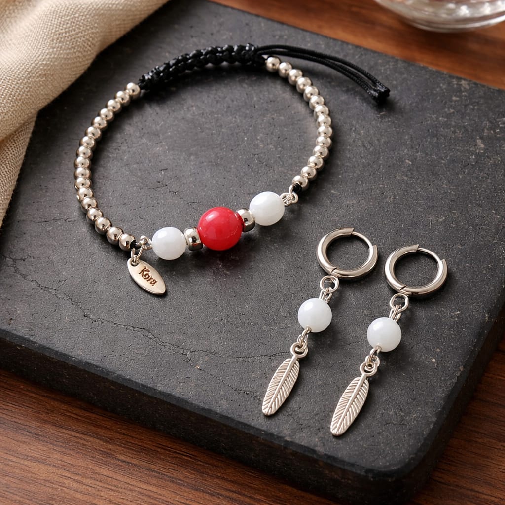 Brincos prateados com pingente pedras brancas e folha de metal.