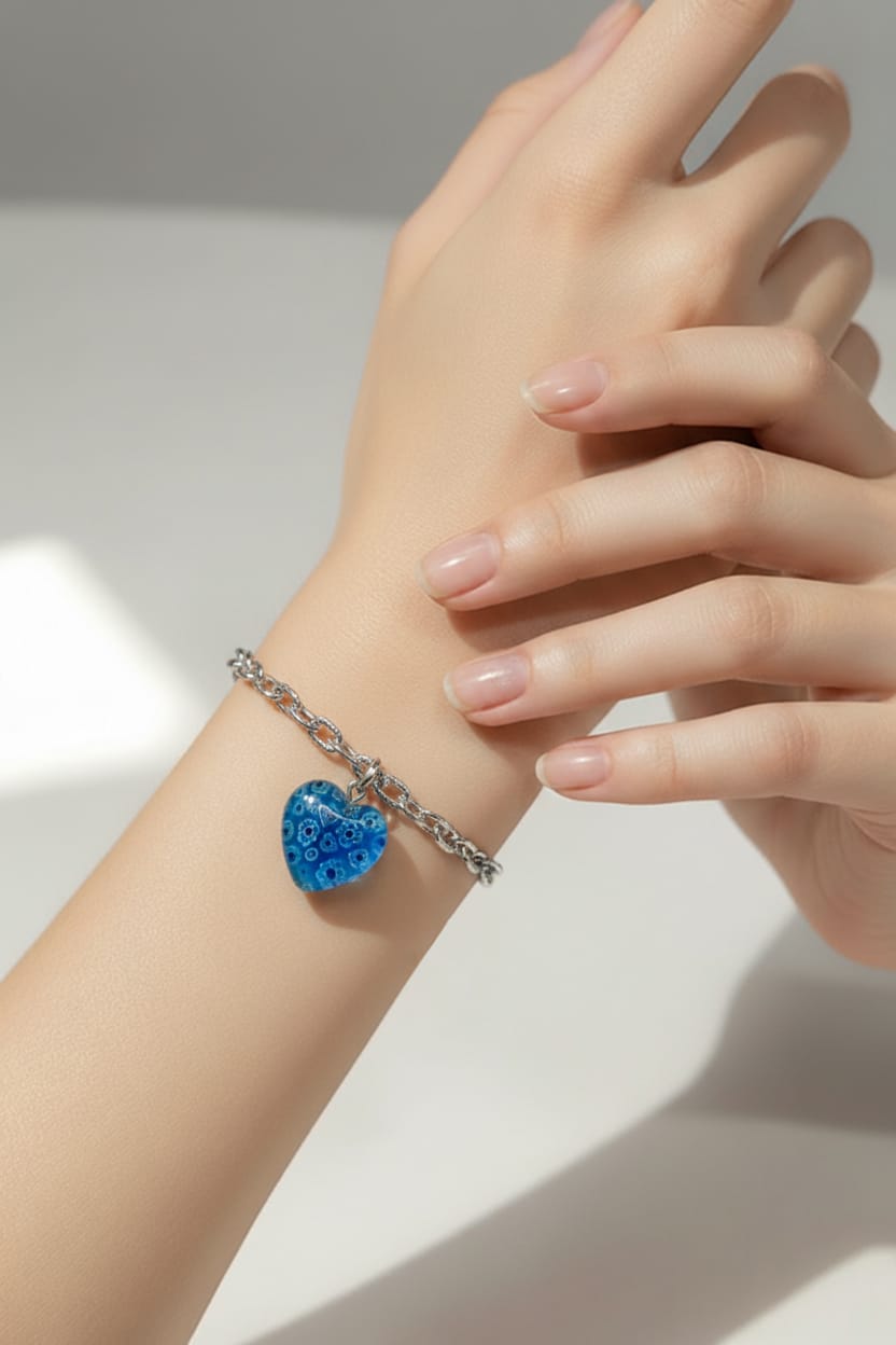 Colar coração em vidro, cores disponíveis - verde e azul com corrente prateada, e vermelho com corrente dourada. Com colar a combinar. Feito à mão.